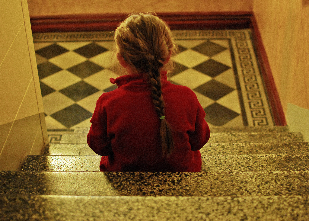Kan tillägga att flickan på bilden är min femåriga dotter som sitter och leker med en docka i trapphuset hos sin farmor. Tuva och jag testade ett antal vinklar och positioner innan vi hittade rätt läge och vinkel, både för henne position och för kameran. För övrigt är Tuva glad tjej med mycket girlpower och många kompisar.