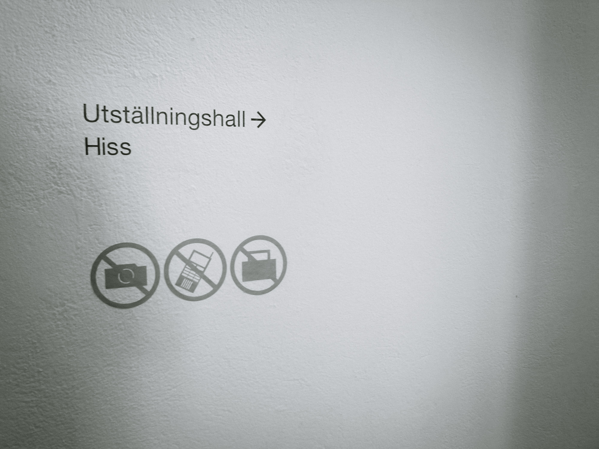 *Ja, jag vet att det var en skylt mot fotograferingsförbud (som jag dessutom fångade med kameran). Men jag tog bilderna helt manuellt, utan blixt, koverterade dom till svartvit och inte i kommersiellt syfte för att sprida eller reproducera konsten. Utan i stället mer för att locka och berätta om hur sevärd utställningen var och att muséet i själv är värt ett besök.
