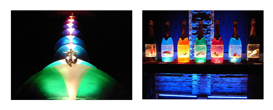 Vid kortsidan med där ljuset flödar in står vackra bronsskulpturer av Andy Howlden.