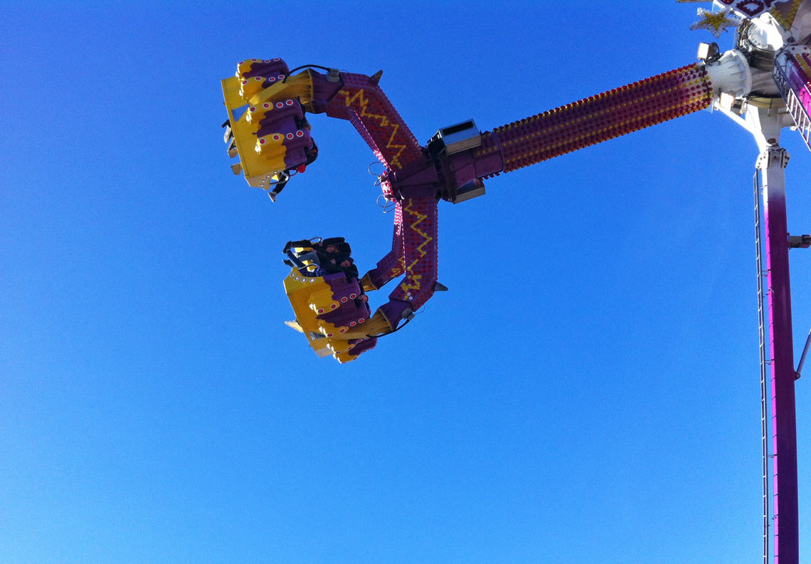 Det ser det roligt ut, men också helt galet när de snurrar runt och samtidigt gungar uppe i luften och det finns inte en chans i världen att jag skulle sätta mig i sådan karusell! …och det behöver jag ju inte som tur är.
