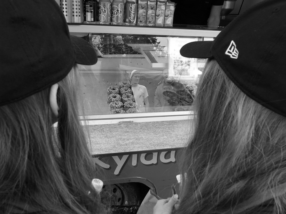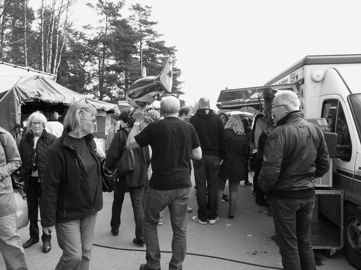Jenny och en klasskompis ska sälja bullar och kakor för att samla in pengar till sin skolresa, så jag har en del tid att mingla runt i solskenet bland stånden och knallarna på Väse Mârten.