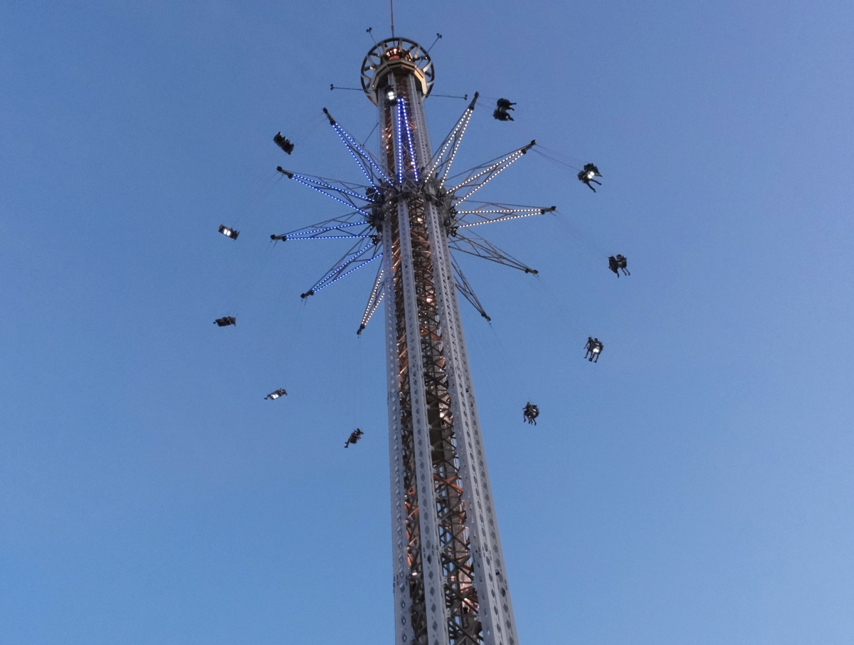 Nu är tiden inne och Jenny svävar högt upp i luften den här sommarkvällen i Stockholm…galet högt! ”Eclipse” är världens högsta Starflyer och med sina 121 meter är Eclipse världens högsta slänggunga!