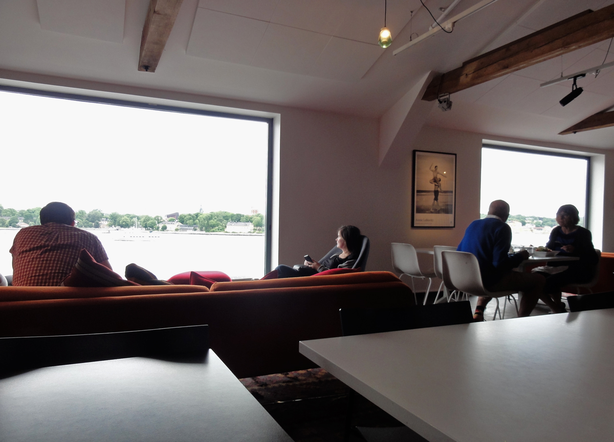 Bistron på övervåningen bjuder på en fantastisk miljö i samma anda som övriga museet med panoramafönster och vacker utsikt mot Stockholm, Skeppsholmen och Djurgården, men det är också en fantastisk prisnivå på sallader och mackor och inte några vidare bra alternativ för barn…och då tänker jag inte pannkakor och köttbullar, utan mer anpassade portioner av det som redan erbjuds. Kanske något att tänka på?