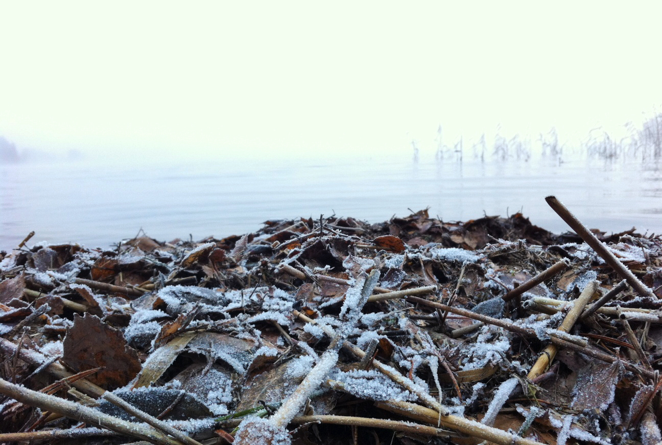 Svänger in vid en sjö på väg hem, för att vila mina sinnen ett tag, hämta andan och njuta en stund av den fina och kalla höstdagem som klätt in landskapet med rimfrost och dimma.