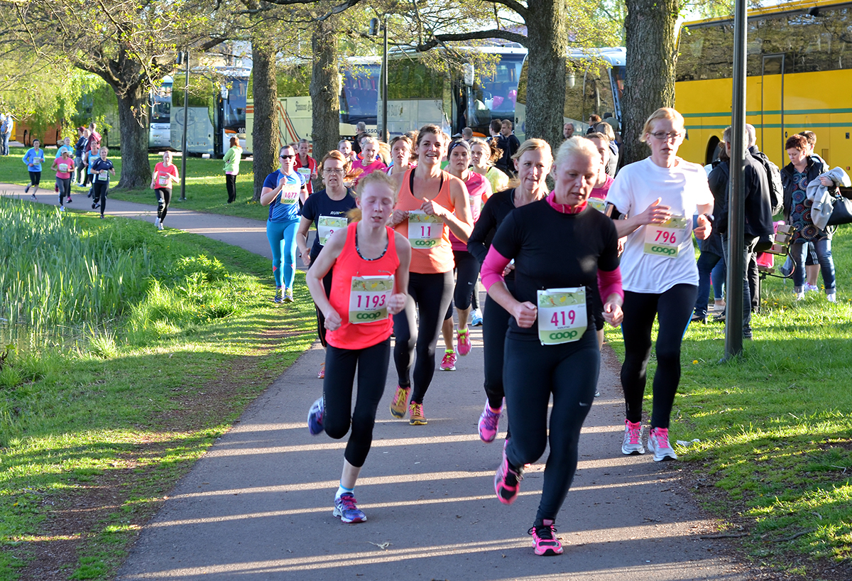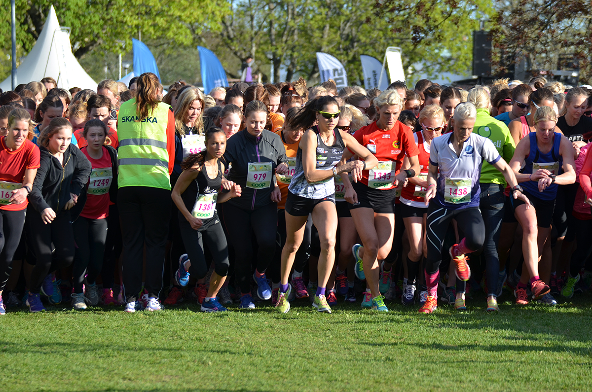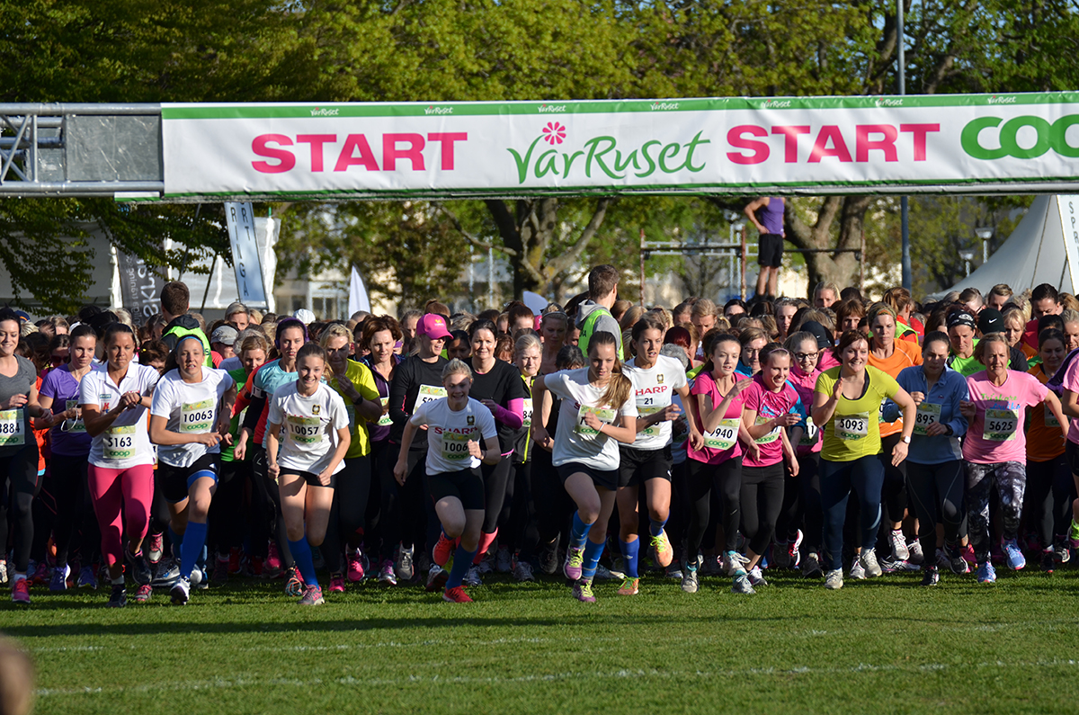 Vårruset är en gigantisk löparfest! 9.000 tjejer och kvinnor med olika ambitioner i allt från att persa och slå tidsgränser, till en rask promenad i fem kilometer.