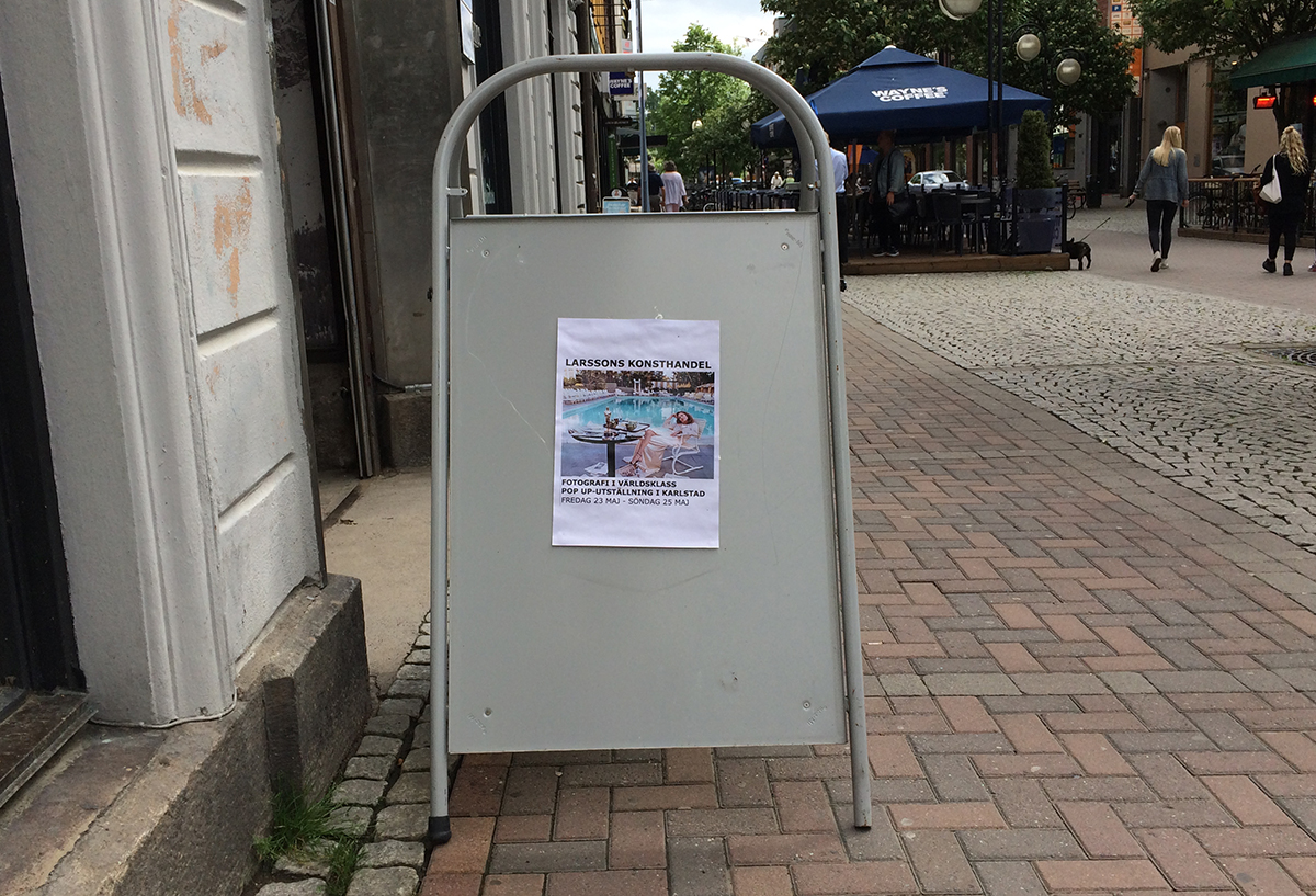 En liten fingervisning om att vi inne på bakgården hittar en tre dagars Pop-up utställning med internationell fotokonst som Larssons konsthandel i Karlstad visar upp (helgen 23-25 maj).