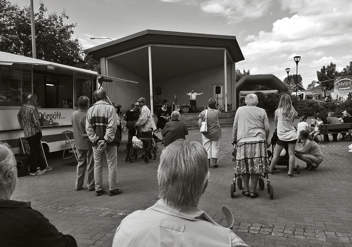 En härlig marknadsdag i Skoghalls centrum med mycket besökare i alla åldrar och strålande väder.