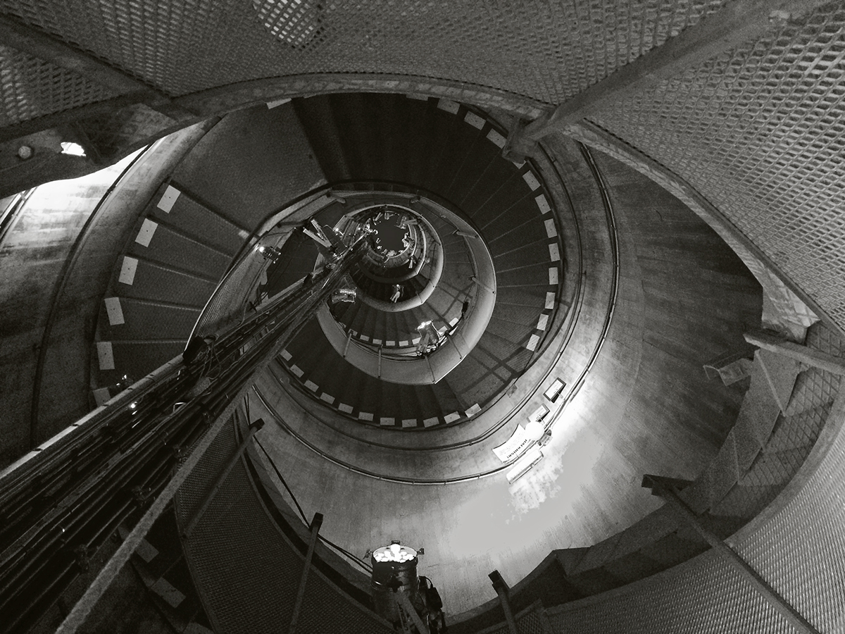 Efter att ha tagit in alla synupplevelser och försökt identifera olika platser uppifrån är det dags att ta sig ner från toppen av vattentornet på Kronoparken.