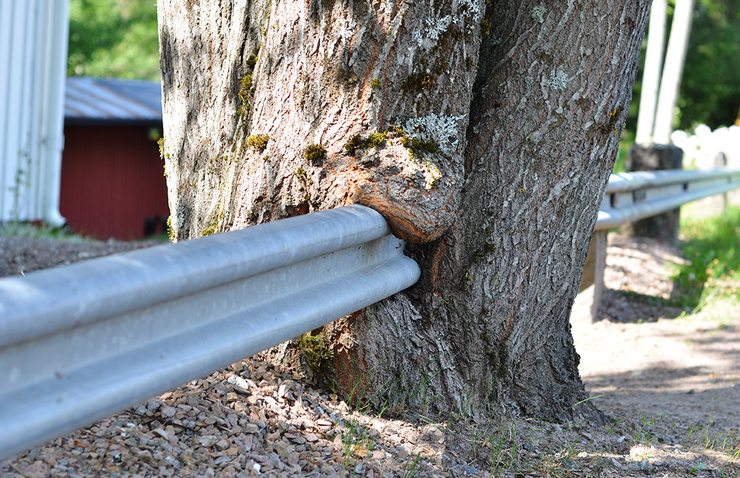 Över tid så är kraften stark nog att sluka vägräcket, i naturens onaturliga passform.