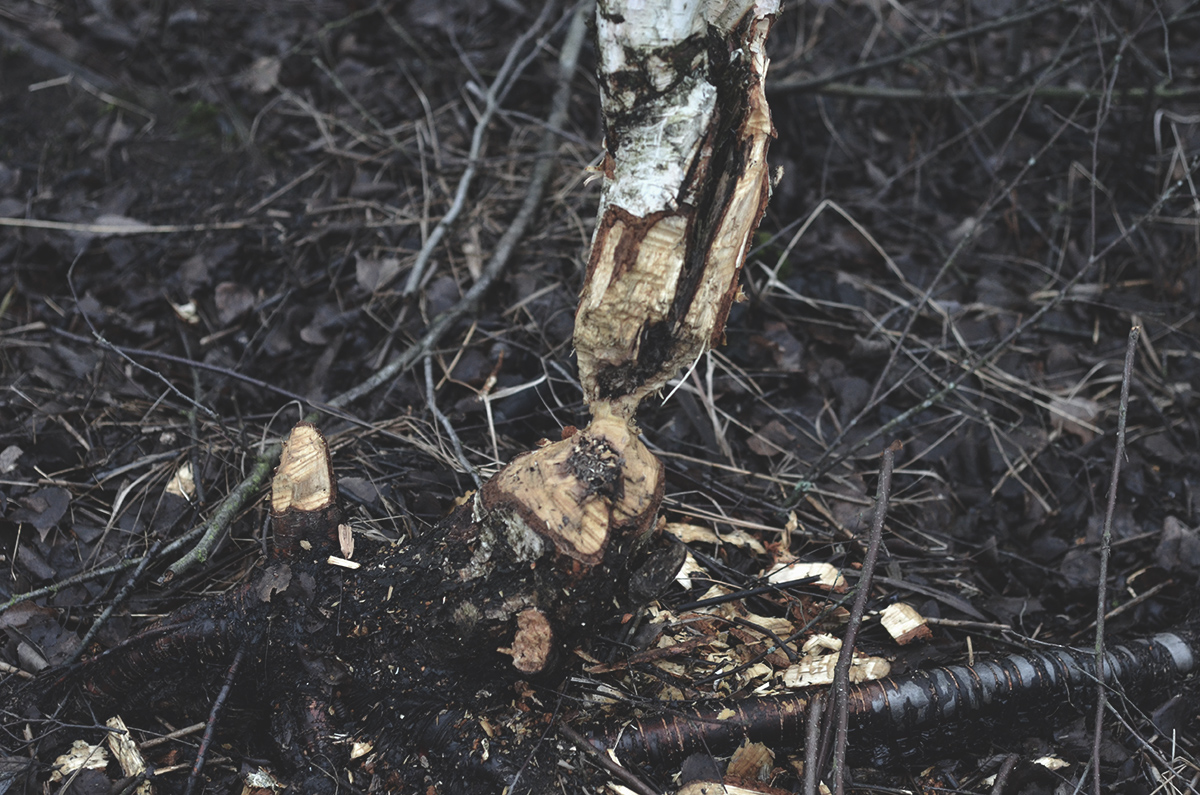 Här pågår nu också en annan form av sågverk och hyvleri, som bävrarna bedriver. Det finns massor av spår från bävrar som synligt har en omfattande verksamhet i området.