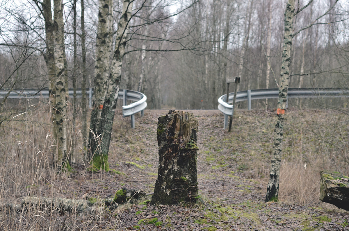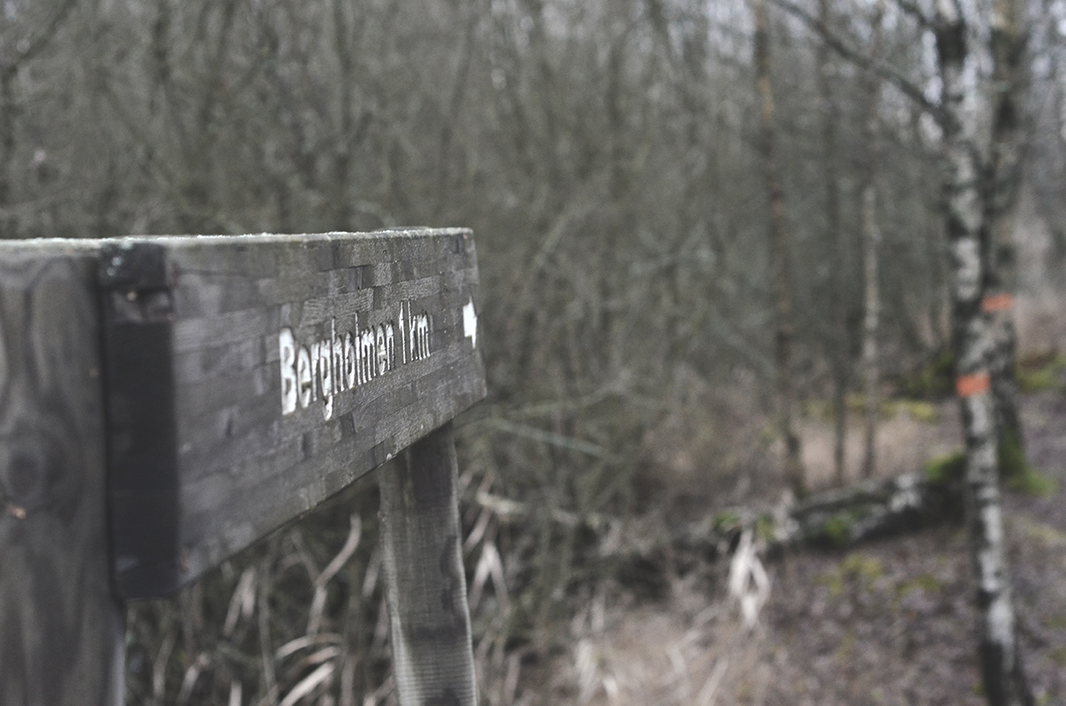 Några dagar senare står jag vid öppning i vägräcket mitt på den hårt trafikerade Hammaröleden, där träskylten ”Berholmen 1 km” pekar in mot den lilla stigen.