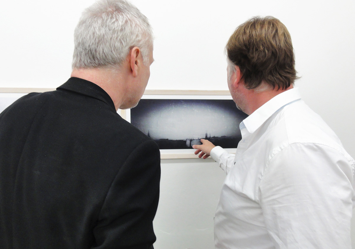 Jag frågar Pelle om han kan välja ut en personlig favorit bland sina bilder på utställningen. Han funderar en kort stund, och så går han iväg och jag följer efter in i ett av utställningsrummen. ”Här är den! Det är Barsebäck, och jag tycker den är skitcool. Jag är inte någon förespråkare av kärnkraft, men Barsebäck är mäktigt, stort och något farligt”: