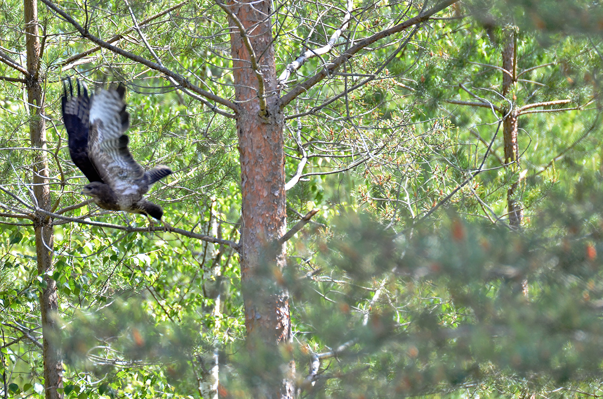Precis när jag knäpper första bilden så vrider ormvråken på huvudet, tittar på mig och med några kraftfulla vingslag lyfter den och så är den utom synhåll.