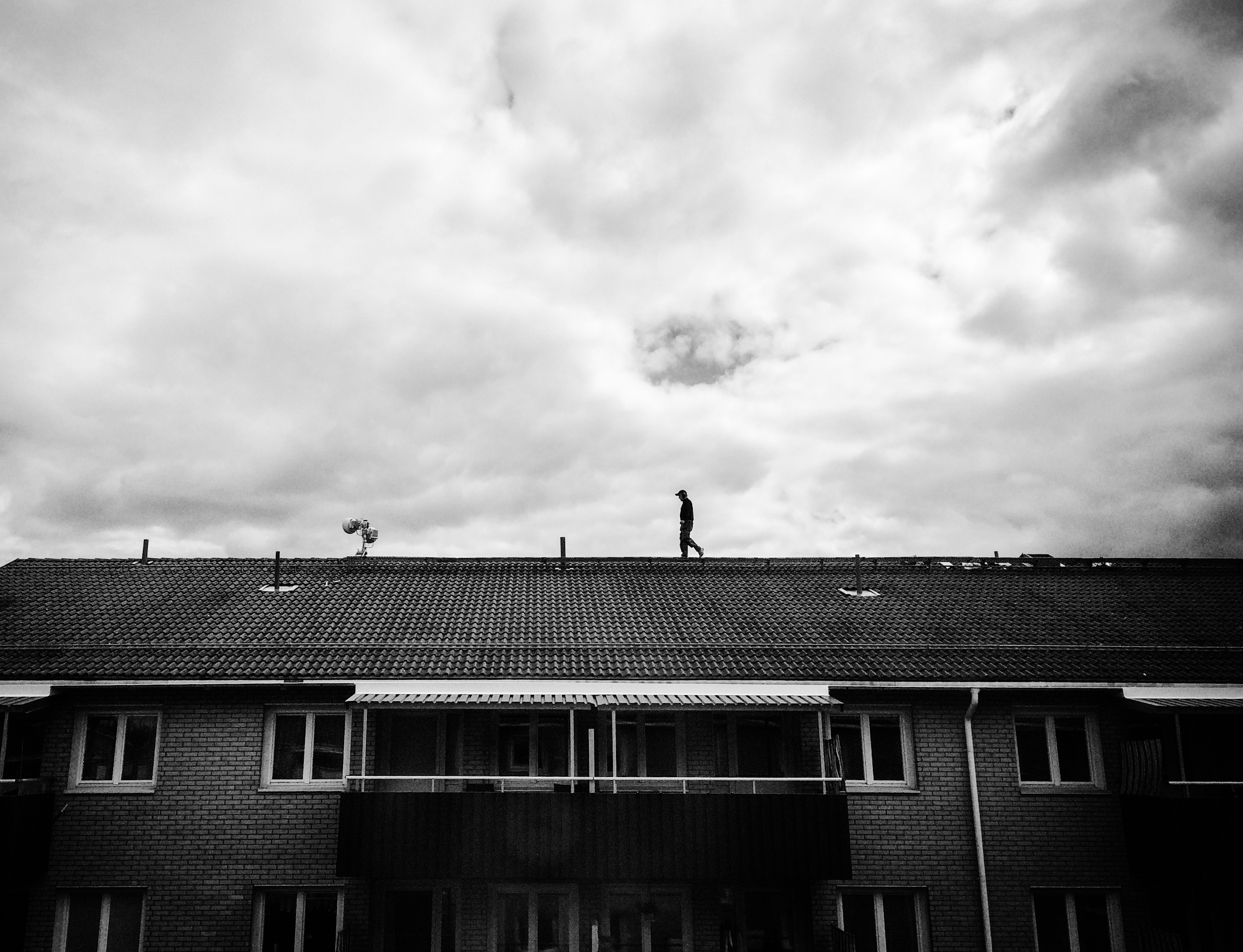 En helt vanlig onsdagsmorgon men en kopp kaffe och en man på taket.