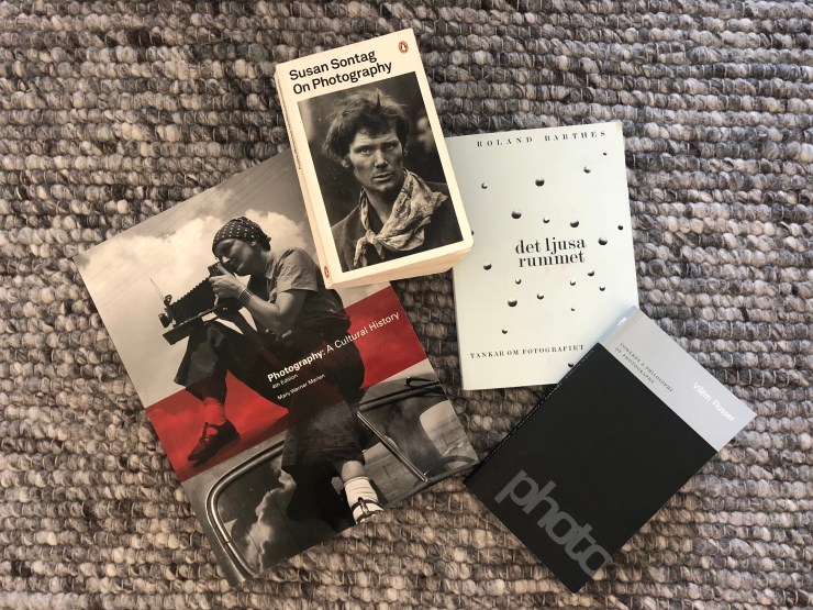 Några av böckerna som var del av kurslitteraturen stod redan hemma i bokhyllan olästa, så det var verkligen ett bra tillfälle att ta sig an Roland Barthes, Vilém Flusser och Susan Sontag på riktigt.