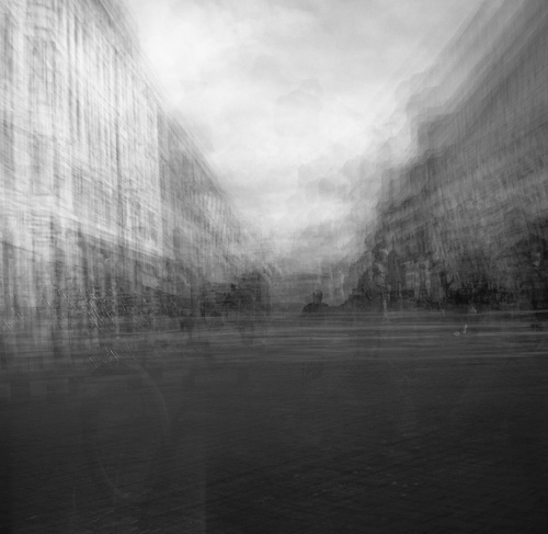 På så sätt skapas det ett lager av ögonblick från platsen som jag fotograferat, som en film i en bild med människor som rör sig i en oskärpa, ett visuellt brus.
